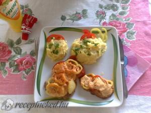 Hozzávalók: 4 szelet kicsontozott sertéstarja 0,5 evőkanálnyi só 1,5 mokkáskanál őrölt fekete bors 4 evőkanál olaj 2 evőkanál mustár 2 csapott kiskanál Piros Arany 2 fej vöröshagyma 5 gerezd fokhagyma 4 paradicsom 2 húsos zöldpaprika 4 dl tejföl 1 csapott kiskanál pirospaprika Elkészítése: Amíg a húst előkészíted, a sütőt melegítsd elő forróra (hőlégkeveréssel 190 fok, gázsütő […]