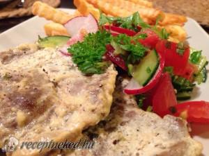 Hozzávalók: 4 szelet sertéstarja 1 ek aprított petrezselyemzöld 1 kis dobozos (lm) tejföl 2 gerezd fokhagyma 1 szelet vaj ízlés szerint só frissen őrölt színes bors Elkészítése: A tejfölt elkeverjük a petrezselyemzölddel és a reszelt fokhagymával. A tarjaszeleteket sózzuk, borsozzuk, majd bekenjük a tejfölös páccal, és egy kivajazott jénai edénybe tesszük. Ha van rá idő, […]