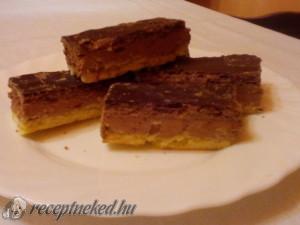 Hozzávalók: Tésztához: 50 dkg liszt 35 dkg margarin 20 dkg cukor 1 tojás 2 ek kakaó Krém: 25 dkg margarin 10 dkg étcsokoládé 20 dkg nutella Csokimáz: 15 dkg tortabevonó csokoládé étolaj Elkészítése: A hozzávalókból (a kakaó kivételével) tésztát gyúrunk, majd kettévesszük, és az egyik felébe belegyúrjuk a kakaót. Kinyújtjuk mindkettőt, és tepsi hátán 180 […]