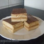 Hozzávalók: Piskótatekercshez: 8 tojás 8 ek cukor 8 ek liszt 1 csomag sütőpor Barna tésztához: 6 tojás 15 dkg kristálycukor 2 ek víz 4 ek liszt fél csomag sütőpor 12 dkg darált keksz 2 ek kakaópor Krém: 6 dl tej 2 csomag amarettó pudingpor 25 dkg margarin 15 dkg cukor Elkészítése: Piskótatekercs készítése: A piskótatekercseket […]