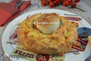 Hozzávalók: Tésztához: 30 dkg liszt 1,5 ek olívaolaj 1 dkg élesztő (friss) 1,5 dl víz 1 tk só 1 tk cukor 1 ek oregano Töltelékhez: 1 csirkemellfilé 2 kaliforniai paprika 20 dkg csiperke gomba 1 ek olaj só bors ízlés szerint bazsalikom (1-2 levél) Tetejére: reszelt sajt Elkészítése: Az átszitált lisztben elkeverjük a sót, majd […]