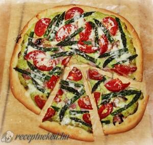 Hozzávalók: Tészta: 25 dkg liszt 1 ek olaj 1,5 dl víz (langyos) 1,5 dkg friss élesztő 1 kk cukor 1 mk só Feltét: 1 csomag zöld spárga paradicsom (ízlés szerint) vékonyra szeletelt sonka (ízlés szerint) 30 dkg mascarpone só őrölt fehér bors 10 dkg reszelt sajt 1-2 ek olívaolaj Elkészítése: Az élesztőt morzsoljuk bele a […]