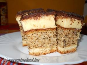 Hozzávalók: Gyúrt tésztához: 20 dkg liszt 0,5 marék porcukor 2 egész tojás 10 dkg margarin 0,5 csomag sütőpor Kevert tésztához: 8 tojás 30 dkg porcukor 20 dkg darált dió 1 ek rétesliszt Krémhez: 2 csomag vanília puding 6 dl tej 6 ek kristálycukor 25 dkg margarin Tetejére: 15 dkg durvára vágott dió 1 tábla ét […]