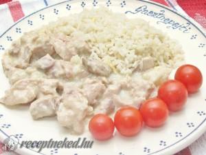Hozzávalók: 1 kg pulykacomb filé 100 g füstölt szalonna 1 nagy fej hagyma 2 gerezd fokhagyma 400 g főzőtejszín 100 g reszelt sajt kevés majoránna kevés só és őrölt bors esetleg kevés szerecsendió reszelve Elkészítése: A pulykahúst csíkokra vágjuk. A szalonnát apróra vágjuk, majd zsírjára pirítjuk. A tepertőt kivéve a hagymát, fokhagymát megdinszteljük a visszamaradt […]