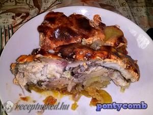 Hozzávalók: 1 db kb. 2 kg-os tisztított friss ponty 1.5 kg burgonya 3 nagyobb fej vöröshagyma 4 db érett paradicsom 4 db zöldpaprika 6-7 gerezd fokhagyma 15 dkg füstölt csemegeszalonna 1 nagy doboz tejföl (20%-os) só bors fűszerpaprika 1 evőkanál liszt zsír, vagy étolaj Elkészítése: A pontyot mélyen beirdaljuk, mindkét oldalát és a hasüreget is […]