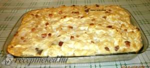 Hozzávalók: 60 dkg fodros nagykocka 1 kg túró 2 kis dobozos tejföl 2 tojás 25 dkg füstölt szalonna só ízlés szerint Elkészítése: A tésztát a szokásos módon, sós, olajos vízben kifőzzük. A túrót összekeverjük a tejföllel, a tojással és egy kevés sóval. (Én kevertem bele a pirított szalonnából is.) A szalonnát kis kockákra vágva lepirítjuk. […]