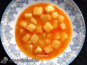 Hozzávalók: 70 dkg krumpli 1,5 liter víz 1 kk só 1 tk házi ételízesítő (esetleg 1 leveskocka) csipet bors 2 púpos ek liszt 3 ek olaj 1 tk őrölt pirospaprika Elkészítése: A krumplit megtisztítjuk, majd felkockázzuk. Felengedjük vízzel, ízesítjük sóval, borssal, házi ételízesítővel (esetleg leveskockával) és addig főzzük, míg a krumpli megpuhul. Közben a lisztet […]