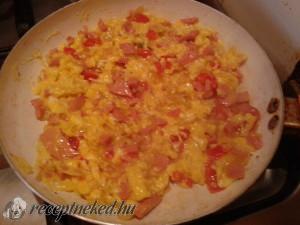 Hozzávalók: 4 tojás 20 dkg párizsi só 1 evőkanál olaj 1 kis fej sonkahagyma 1 piros hegyes paprika bors Elkészítése: A hagymát, a paprikát, a párizsit kockára vágjuk. A tojásokat felütjük, sózzuk, borsózzuk, majd felverjük. A serpenyőben olajat hevítünk, majd beletesszük először a hagymát, üvegesre dinszteljük, majd rádobjuk a paprikát, tovább pároljuk, majd következik a […]