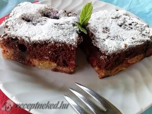 Hozzávalók: 11 tojás 10 csapott ek porcukor 10 csapott ek liszt 3 csomag vaníliás cukor 1 tk szódabikarbóna 2 púpos ek kakaópor 1 cs sütőpor 15 dkg margarin 60 dkg rebarbara 1 púpos ek kristálycukor 20 dkg friss málna tetejére 1 ek porcukor Elkészítése: A rebarbarát meghámozzuk, és kb. 2 centis darabokra vágjuk, megszórjuk egy […]