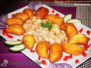 Hozzávalók: Csirkéhez: 1 dl olaj 2 vöröshagyma 5 gerezd fokhagyma 1 ek ketchup 1 kk méz só bors ételízesítő majoranna 1 dl fehér bor 0,5 kg csirkemell Kroketthez: 25 dkg krumpli 25 dkg liszt 1 dl tej 2 dkg élesztő 1 tojás só Elkészítése: A csirkemellet csíkokra vágjuk. A szószt elkészítjük: az olajon a lereszelt […]