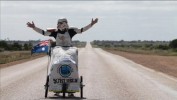 Egy ausztrál férfi rohamosztagosnak öltözve járta Ausztráliát, jótékony célból. Már 279 napja útov van. Állítása szerint megtámadta egy mulga kígyó, de jelmeze miatt nem tudta megharapni. Videokredit: STORMING AUSTRALIA