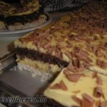Hozzávalók: sütemény maradványok vagy piskótalap 2 ek kakaópor 1 ek baracklekvár ízlés szerint rum rumos meggy 1-2 ek cukor 5 dkg darált dió 5 dkg vagdalt dió 5 dkg étcsokoládé darabok 6-7 dkg vaj A bevonáshoz: 10 dkg étcsoki 5 dkg margarin 0,5 dl olaj csokidara Elkészítése: A sütemény maradványkat vagy piskótát összemorzsoljuk, majd hozzáadjuk […]