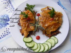 Hozzávalók: 6 szelet hosszú csont nélküli karaj só őrölt bors kb 0,5 dl 3 közepes burgonya 2 nagyobb vöröshagyma 1 derezd fokhagyma ízlés szerint ketchup 1 dl húsleves alaplé Elkészítése: A karaj szeleteket sózzuk, borsozzuk, majd felhevített olajban mindkét oldalát pirosra sütjük, kivesszük az olajból és félretesszük. Amikor az összes húst kisütöttük, a megmaradt olajba beletesszük […]