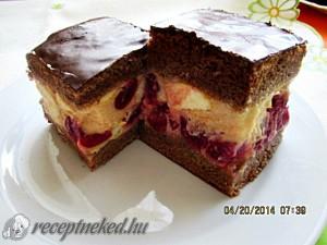 Hozzávalók: 2* 4 tojás 2* 8 dkg porcukor 2* 6 dkg finomliszt 2* 2 dkg kakaó 2*2 ek víz 2*1 ek olaj 1 csomag sütőpor Töltelék: 680 dkg meggybefőtt (jól lecsepegtetni) 3 ek rum vagy rumaroma 10 dkg babapiskóta, amit négyfelé tördelünk a krémhez 2 cs tejszínű puding 5 dl tej 20 dkg cukor 25 […]