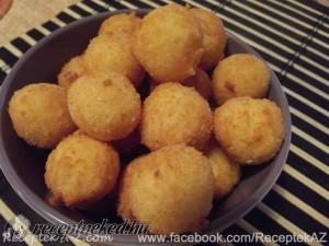 Hozzávalók: 200 g reszelt sajt 1 tojás 4 ek liszt zsemlemorzsa Elkészítése: A reszelt sajtot, a lisztet és a tojást összegyúrjuk, és kicsi golyókat formázunk belőle. Zsemlemorzsában megforgatjuk, és forró olajban kisütjük. Tartármártással kínáljuk.