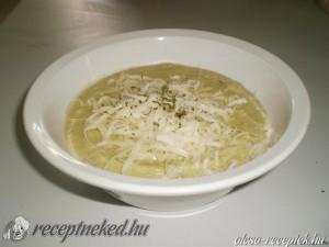 Hozzávalók: 50 dkg brokkoli 30 dkg burgonya 1 vöröshagyma 1 ek olaj 1 húsleveskocka 2 dl főzőtejszín 15 dkg sajt Elkészítés: A hagymát kevés olajon üvegesre pároljuk, hozzáadjuk a rózsáira szedett brokkolit, és a felkockázott burgonyát. Felöntjük kb. fél-1 liter vízzel, hozzáadjuk a leveskockát, és addig főzzük, amíg a zöldségek megpuhulnak. Botmixerrel pépesítjük, hozzáadjuk a […]