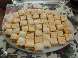 Hozzávalók: A tésztához: 30 dkg átszitált finomliszt 18 dkg margarin 10 dkg reszelt sajt 2 tojás sárgája 3 evőkanál 20 %-os tejföl 1 csapott kávéskanál só A krémhez: 1,5 dl tej 3 dkg finomliszt 10 dg teavaj 10 dkg reszelt sajt 1 csapott kávéskanál pirospaprika 1 mokkáskanál só A díszítéshez: 5 dkg reszelt sajt Elkészítése: […]