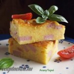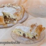 Hozzávalók: Tészta: 1,2 kg sima liszt 20 dkg margarin 170 g tejföl 2,5 dkg élesztő csipet cukor 1 csomag sütőpor 1 késhegynyi szódabikarbóna 1 tk só 1 dl langyos tej Vajas réteg: 1 teavaj 6-7 dkg liszt pici só Tetejére: 1 felvert tojás 3 dkg trappista sajt szezámmag Elkészítése: A tésztához a lisztben elkeverjük a […]