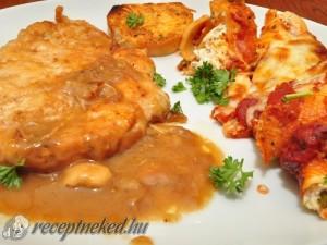 Hozzávalók: 1 kg pulykamell 40 dkg reszelt sajt 5 dl tej 5 tojás fokhagymakrém vagy zúzott fokhagyma liszt margarin só 5 dl főzőtejszín Elkészítése: A pulykamellet szeletekre vágjuk, és fokhagymás tejben kb. 2 órára bepácoljuk. A sajtot lereszeljük, a tojásokat egy tálban felverjük. A jénai tálat kikenjük margarinnal. A pulykamellszeleteket a tejből kivéve először a […]
