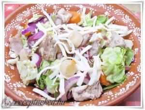 Hozzávalók: Főtt leveszöldségek, (sárgarépa, gyökér, karalábé, zeller, főtt fokhagyma) főtt hús (orja a csontról lefejtve) kevés lilahagyma szívsaláta, vagy fejes saláta, esetleg bármilyen friss salátakeverék kevés balzsamecet, és extra szűz olíva olaj ha van, kevés reszelt sajt Elkészítése: A főtt húst feldaraboltam, a főtt zöldségeket is, majd óvatosan, hogy ne törjön összekevertem tépkedett szívsalátával, és […]