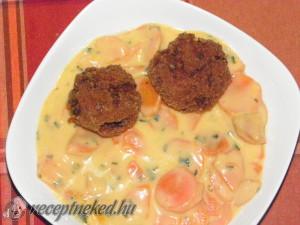 Hozzávalók: 1 kg sárgarépa 1 csokor petrezselyem zöld 2 ek zsír 1 dl száraz rozé bor 1 kávéskanál pirospaprika 3 ek finomliszt 3 dl tej ízlés szerint só Elkészítése: A sárgarépát felszeletelem és a zsíron a bor hozzáadásával puhára párolom, majd megszórom finomliszttel és állandó keverés mellett pirítom pár percig. Ezután félrehúzom a lángról, megszórom […]