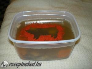 Hozzávalók: 3 kg sertés köröm /lehet közte füstölt is/ 20 dkg sertés farok 50 dkg bőrke 2 kg csülök 5 tk só 15-20 gerezd fokhagyma 5 szál sárgarépa 5 szál zöldség 10-15 szemes bors 5 liter víz a díszítéshez pirospaprika Elkészítése: A zöldség féléket megpucoljuk, nem kell felvágni mert sokáig főnek. Egy nagy fazékba feltesszük […]