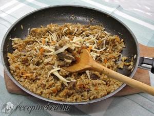 Hozzávalók: 40 dkg sertésmáj 2 sárgarépa 1 csésze rizs 1 csésze alaplé csipet só csipet bors kevés szarvasgomba fűszerolaj Elkészítése: A sárgarépát lereszelem vagy zsülienre vágom. A sertésmájat felcsíkozom. A répát kevés olajon dinsztelem, majd hozzáadom a csíkokra vágott májat. Fehéredésig továbbdinsztelem, majd beleöntöm a rizst és felöntöm annyi alaplével, hogy éppen ne lepje el. […]