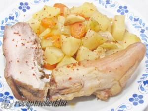 Hozzávalók: 2 kg krumpli 3 sárgarépa 3 vöröshagyma 6 gerezd fokhagyma 1,5 kg csontozott csülök csilipehely só őrölt bors 2 dl sör kevés étolaj Elkészítése: A csülköt durva szemű sóval bedörzsöljük, megborsozzuk, sörrel meglocsoljuk, majd hűtőbe tesszük egy éjszakára. A krumplit megtisztítjuk, feldaraboljuk, a hagymát nagyobb cikkekre vágjuk. A fokhagymagerezdeket megpucoljuk, kés lapjával megnyomjuk. A […]