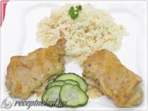 Hozzávalók: 1 kg csirkefelsőcomb-filé 1 vöröshagyma 8-10 gerezd fokhagyma 1 ek mustár só kevés frissen őrölt bors 1 ek olaj 1 dl leves alaplé Elkészítése: A csirkecombokat kifilézzük, és a csontokat enyhén sós vízben feltesszük főni. Az így keletkezett alaplét később felhasználjuk a szószhoz, de zöldségekkel akár kitűnő leves is készülhet belőle. A filézett csirkecombokat […]