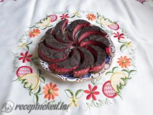 Hozzávalók: 25 dkg margarin 20 dkg cukor 2 dl tej 50 dkg kekszmorzsa 2 ek cukrozatlan kakaópor 15 ml vérnarancs aroma 20 dkg étcsokoládé (tetejére) 1 ek napraforgó olaj (tetejére) Elkészítése: Egy edényben a margarint a cukorral és a tejjel összemelegítjük annyira, hogy elolvadjon. Hozzáadjuk a darált kekszet, és összeforgatjuk. Kettévesszük a tésztát. Egyik felébe […]