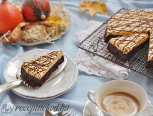 Hozzávalók: Tészta: 18 dkg liszt 18 dkg cukor 5 dkg kakaópor 1 teáskanál szódabikarbóna 2 dl majonéz 1, 5 dl meleg víz Krém: 25 dkg mascarpone 25 dkg sült tökpüré porcukor ízlés szerint Díszítés: 5 dkg étcsokoládé 1 ek olaj összemelegítve Elkészítése: Előmelegítjük a sütőt 180 °C – ra, egy kapcsos tortaformát ( kb 22 […]