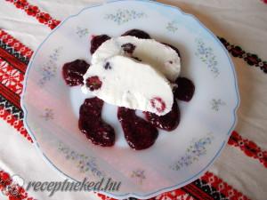 Hozzávalók: 5 dl tejszín 2 kis pohár joghurt 25 dkg szeder + 20-25 szem ízlés szerint cukor Elkészítése: A tejszínt verjük fel keményre,adjuk hozzá a joghurtot, és cukrot ízlés szerint. Őzgerinc formát béleljünk ki fóliával. A bélelt forma aljára rakjuk a tejszín 1/3 részét, erre rakosgassunk szeder szemeket, újra tejszín, majd szeder, a tetejét tejszínnel […]