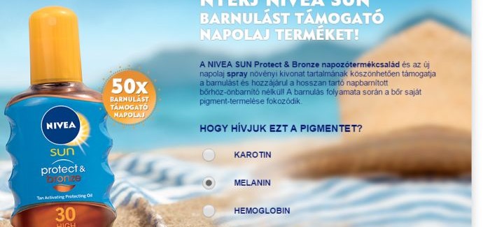 A helyes választ adó játékosok között Szervező 50 db NIVEA Protect & Bronze FF30 barnulást támogató napolaj spray 200 ml terméket sorsol ki.