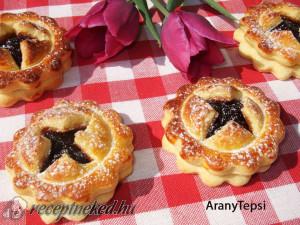 Hozzávalók: Tésztához: 60 dkg liszt 2,5 dkg élesztő 3 dl tej 1 nagyobb tojás sárgája 10 dkg margarin 1 kk só 3 ek cukor 1 tasak vaníliás cukor Töltelékhez: 1 kis üveg szilvalekvár fele Lekenéshez: 1 nagyobb tojás sárgája 2 ek tej Szóráshoz: 1 ek porcukor Elkészítése: Az élesztőt felfuttatjuk a langyos tejben 1 ek […]