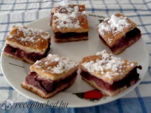 Hozzávalók: Tésztája: 60 dkg liszt 2 tojás 1 kis pohár tejföl 4 dkg élesztő egy csipet cukor pici só 20 dkg zsír Töltelék: 2 kgszilva apró darabokra vágva fahéjjal cukorral vaníliás cukor Elkészítése: Az élesztőt elkeverjük simára a tejfölben, és hozzáadjuk a liszthez. A többi hozzávalót is beletéve összegyúrjuk. Könnyen nyújtható tésztát kapunk, amit szedjünk […]