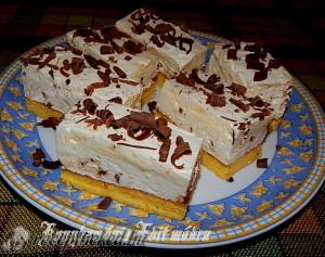 Hozzávalók: 24 × 39 cm-es tepsihez Tészta: 6 tojás 6 ek porcukor 6 ek finomliszt 1 ek étolaj 6 gramm sütőpor Krém: 40 dkg narancs reszelt héja és leve 7 dl tej 20 dkg cukor 2 vaníliás pudingpor 2 maxi sportszelet (42 gramm) 1 dl víz 10 gramm zselatin 4 dl főzőtejszín Tetejére: 5 dkg […]