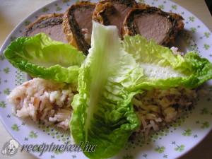Hozzávalók: 40 dkg-os szűzpecsenye 15 dkg sertésháló (receháló) 10 dkg bacon szalonna 4 forrázott kelkáposztalevél só bors majoranna 2 ek olaj A gombás töltelékhez: 1 vöröshagyma 15 dkg csiperkegomba 1 ek vágott petrezselyem 1 tojássárgája 1 ek zsemlemorzsa 2 ek vaj Elkészítése: Először a gombás tölteléket készítjük el: a finomra vágott vöröshagymát az olvasztott vajon […]