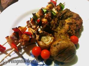 Hozzávalók: A húshoz: 3 szelet sertéstarja 2 ek dijoni mustár 1 ek currypor 1 ek ételízesítő 0,5 dl olívaolaj őrölt színes bors A saslikhoz: 1 nektarin 3 szilva 100 g füstölt szalonna 1 kápia paprika 1 zöld paprika A gombákhoz: 400 g csiperkegomba 4 ek balzsamecet frissen őrölt színes bors Elkészítése: A pác elkészítéséhez kikeverjük […]
