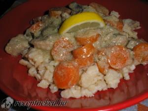 Hozzávalók: 70 dkg sertéslapocka 3 szál sárgarépa 15 dkg csiperkegomba 1 dl tejföl 1 nagy fej vöröshagyma 2 gerezd fokhagyma 2 evőkanál friss tárkony só bors 4 evőkanál olaj 1 citrom Elkészítése: Az apróra kockázott hagymát az olajon megdinszteljük. A lapockát megtisztítjuk az inaktól és felesleges zsiradéktól. Ezután kockákra vágjuk és a hagymához adjuk. Kb […]