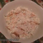 Hozzávalók: 1 kg csirkemell filé 1 nagy dobozos tejföl 2 tojás 1-2 dl tej 2 tojás 6-8 háromszög sajt 15 dkg reszelt sajt bors só majoránna petrezselyem kakukkfű Elkészítése: A filézett mellet hosszában kettévágjuk, majd befűszerezzük ízlés szerint és egy közepes méretű, magasabb falú tepsibe sorban egymás mellé tesszük. A háromszög sajtot egyenletesen eloszlatjuk a […]