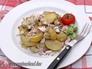 Hozzávalók: 200 g főzőtejszín 2 db csirkemell 2,5 kg újburgonya 2 db lilahagyma 6 gerezd fokhagyma, apróra vágva 1 csokor snidling 1 csipet só és bors 1 szál kakukkfű 1 kevés olaj Elkészítése: A csirkemellet előfőzzük, majd kicsontozzuk. Az alaplé kitűnő lesz levesekhez, viszont egy pohárral félreteszünk a húscsíkok sütéséhez. A főtt csirkemellet felcsíkozzuk, majd […]