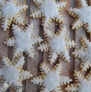 Hozzávalók: 180 g liszt 2 cs tejszín ízű pudingpor 160 g puha margarin 100 g porcukor 1 tojás sárgája 1 egész tojás 1 nagy csipet só 1 nagy csipet szódabikarbóna Tetejére: 1 tojásfehérje 4 púpos ek porcukor Elkészítése: A puha vajat és a porcukrot elkezdjük habosítani, majd hozzáadjuk a tojás sárgáját és az egész tojást. […]