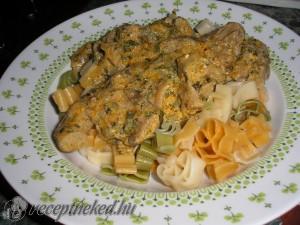 Hozzávalók: 25 dkg laskagomba 1 tk só 1 tk fűszerpaprika frissen őrölt bors ízlés szerint 1 db vöröshagyma 4 ek olívaolaj 2 gerezd fokhagyma 2 dl főzőtejszín 1 ek vágott petrezselyemzöld csipet kakukkfű 1 ek ételsűrítő por 40 dkg trikolor olasz tészta Elkészítése: A gomba vastag szár részét levágjuk. Folyóvíz alatt alaposan megmossuk, szűrőre tesszük, […]