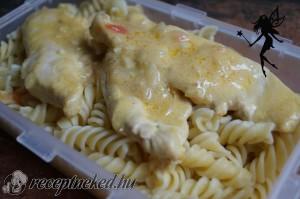 Hozzávalók: 300 g csirkemell szeletek 1 közepes vöröshagyma 4-5 gerezd fokhagyma 1-2 dl tejszín 1-2 ek mustár só bors olaj Elkészítése: Olajon megdinszteljük a hagymát és a fokhagymát. Mikor félig kész a hagyma, rátesszük a hússzeleteket, és megsütjük mindkét oldalát. Ha megsült a husi és a hagyma is, felöntjük a mustárral elkevert tejszínnel. Sózzuk, borsozzuk, […]