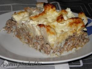 Hozzávalók: 1 fej karfiol 1 kg darált hús 1 fej vöröshagyma 3 gerezd fokhagyma 3 ek napraforgó olaj 1 bögre rizs 1 tk kakukkfű 1 tk borsikafű 5 dl főzőtejszín 10 dkg sajt 1 tojás 5 dkg vaj 2 ek zsemlemorzsa só ízlés szerint Elkészítése: A karfiolt rózsáira szedem, a nagyobbakat feldarabolom. Enyhén sós vízben […]