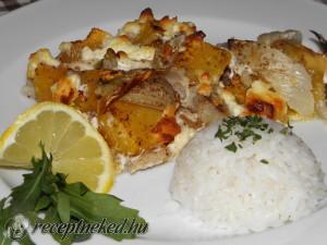 Hozzávalók: 80 dkg tengeri halfilé (tőkehal) 1 édeskömény 50 dkg sütőtök 10 dkg lágy kecskesajt 4 ek olívaolaj 0,5 citrom leve 3 dl főzőtejszín 1 tojás 1 kk őrölt édeskömény 0,5 kk őrölt szegfűbors 1/4 frissen reszelt szerecsendió frissen őrölt bors só Elkészítése: A fagyasztott tőkehalat kiolvasztom, a nedvességet papírtörlővel felitatom, és felkockázom. Az édesköményt […]
