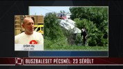 Utasokkal teli busz borult árokba Pécsnél – 23-an megsérültek, az ablakokon át mentették az utasokat.