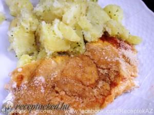 Hozzávalók: 4 szelet halfilé só őrölt feketebors fűszerkeverék (hal) tartármártás zsemlemorzsa 2 tojás vaj Elkészítése: A halfilét vízzel leöblítjük, majd szárazra töröljük. Megízesítjük sóval, őrölt fekete borssal és fűszerkeverékkel. A tartármártással kikenünk egy kisebb tepsit, majd az ízesített filéket rátesszük. A tojásokat felverjük, és ráöntjük a halszeletekre. Zsemlemorzsával bőven megszórjuk, és vajforgácsokat teszünk a tetejére. […]