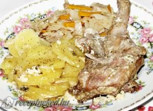 Hozzávalók: 1.5 kg nyúlhús 2 kg burgonya 5 fej hagyma 6 gerezd fokhagyma 200 g főzőtejszín 3 szál kakukkfű 1 kanál mustár csipet só csipet bors 1 kanál zsír 1 kanál liszt Elkészítése: Az étel, nyúlcombokból készült, de más nyúlhúsból is elkészíthető. A sütőtálat kizsíroztam, majd a meghámozott, karikára vágott krumplit belerétegeltem. Erre került karikára […]