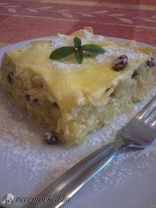 Hozzávalók: 15 dkg kristálycukor 1 cs vaníliás cukor 3 tojás 300 g kefir 150 g tejföl 1/2 liter tej 5 dkg mazsola 25 dkg fodros tészta margarin a tepsi kikenéséhez Elkészítése: A tojásokat a kétféle cukorral habosra keverem, majd beleöntöm a tejfölt és a kefirt, jól átkeverem, végül hozzáöntöm a tejet is. Egy kisebb tepsit […]